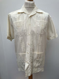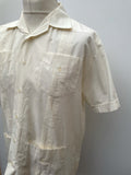 Mens original 1950s shirt in cream by The Havana Co. Button fastening with four front pockets and classic pleated front. Short sleeves and big collared.