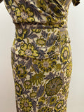 1960s Does 1940s WW2 Short Sleeve Floral Fitted Peplum Wiggle Dress - Size UK 8
