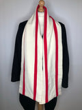 Mens original 1960s college scarf by Lester Bowden. Pure new wool in cream with red stripes.
