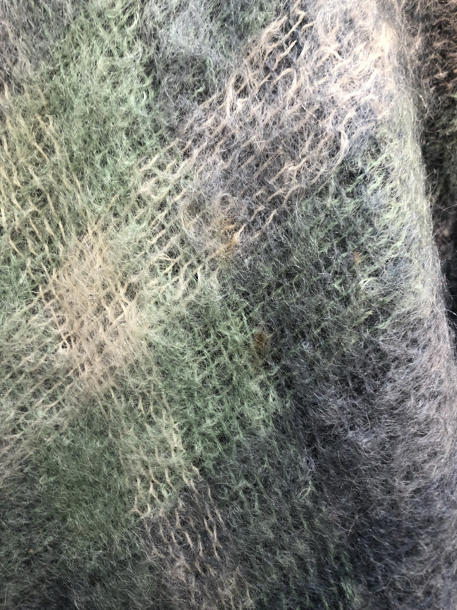 1960s Poncho in Blue by Heather Glen with a fringed hem. Mohair and Wool blend.