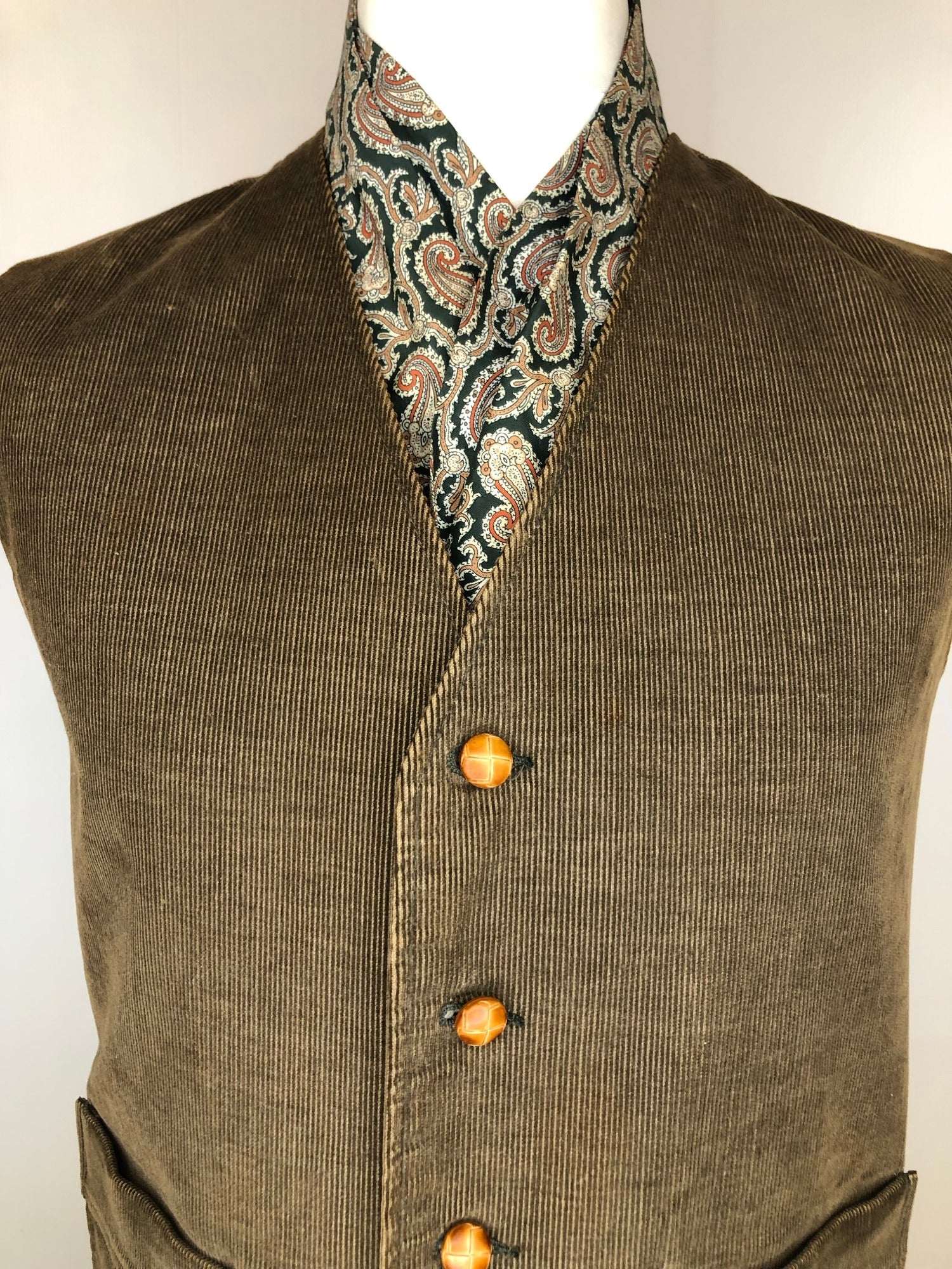 In good condition. The waistcoat has been pinned on the mannequin to show the fit.