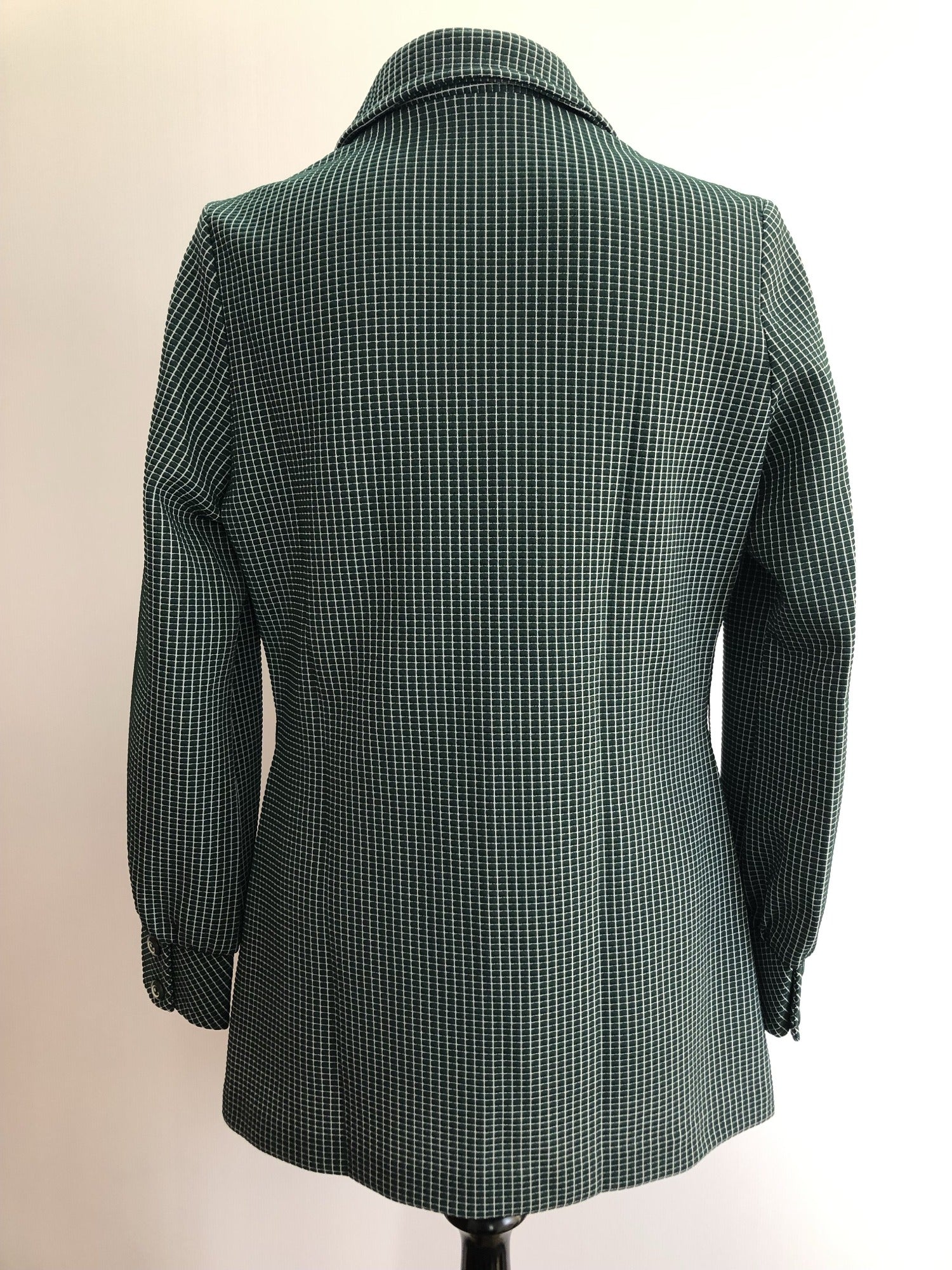 Womens 1970s Balloon Sleeve Blouse in green by Butte Knit with a square print. Features two front pockets and a button front fastening.
