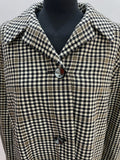 Womens original 1960s cape with a checked brown pattern. Front button fastening and side pockets and arm holes.