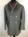 Mens original 1970s car coat by Briqwater, brown corduroy fabric, side pockets, double breasted fastening, faux sheepskin collar and quilted lining. Made in England.