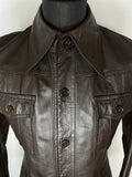 1970s Brown Fitted Leather Jacket with Dagger Collar - Size S