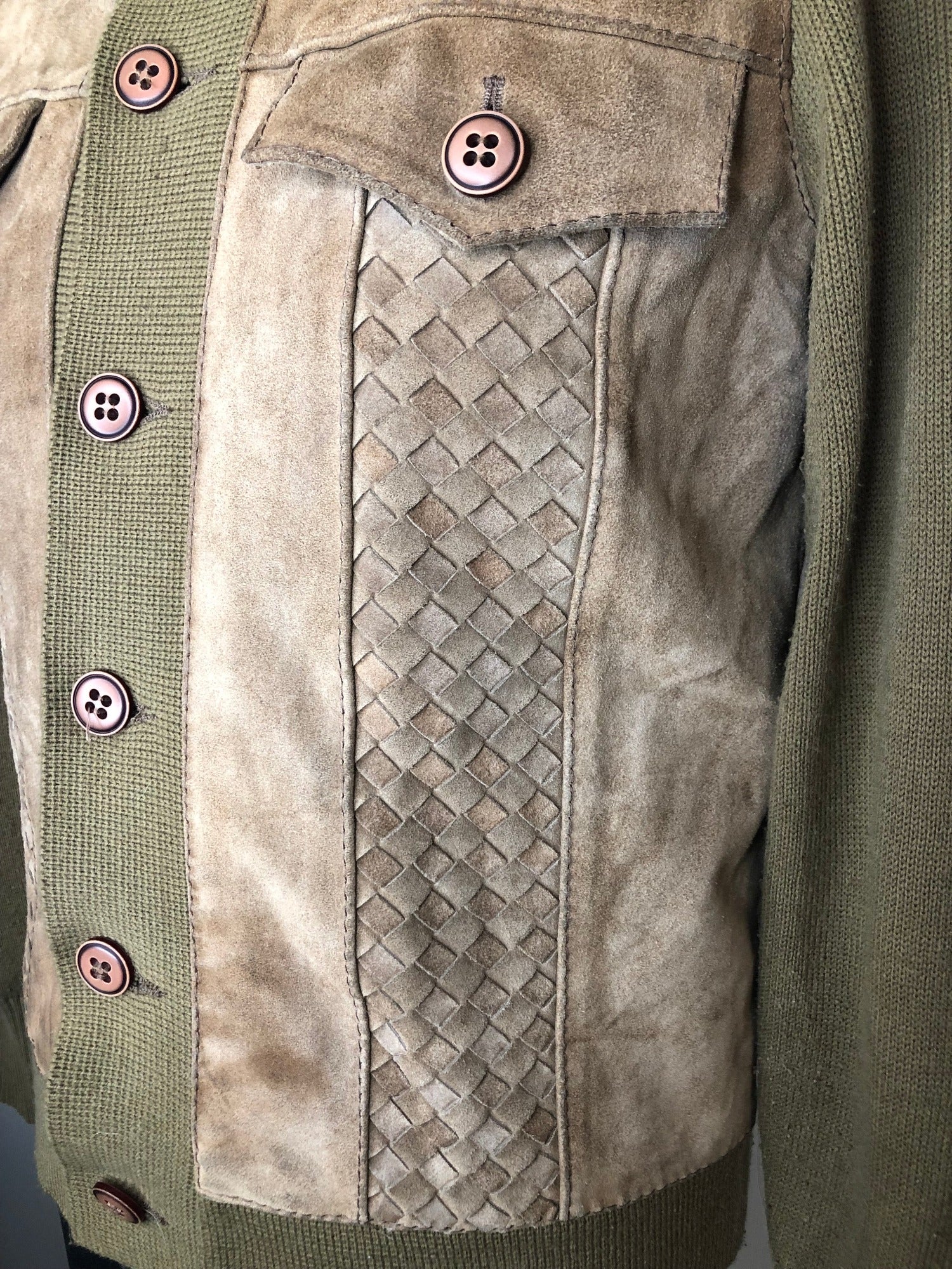 1970s Knit and Suede Cardigan Jacket by Rend - Size S