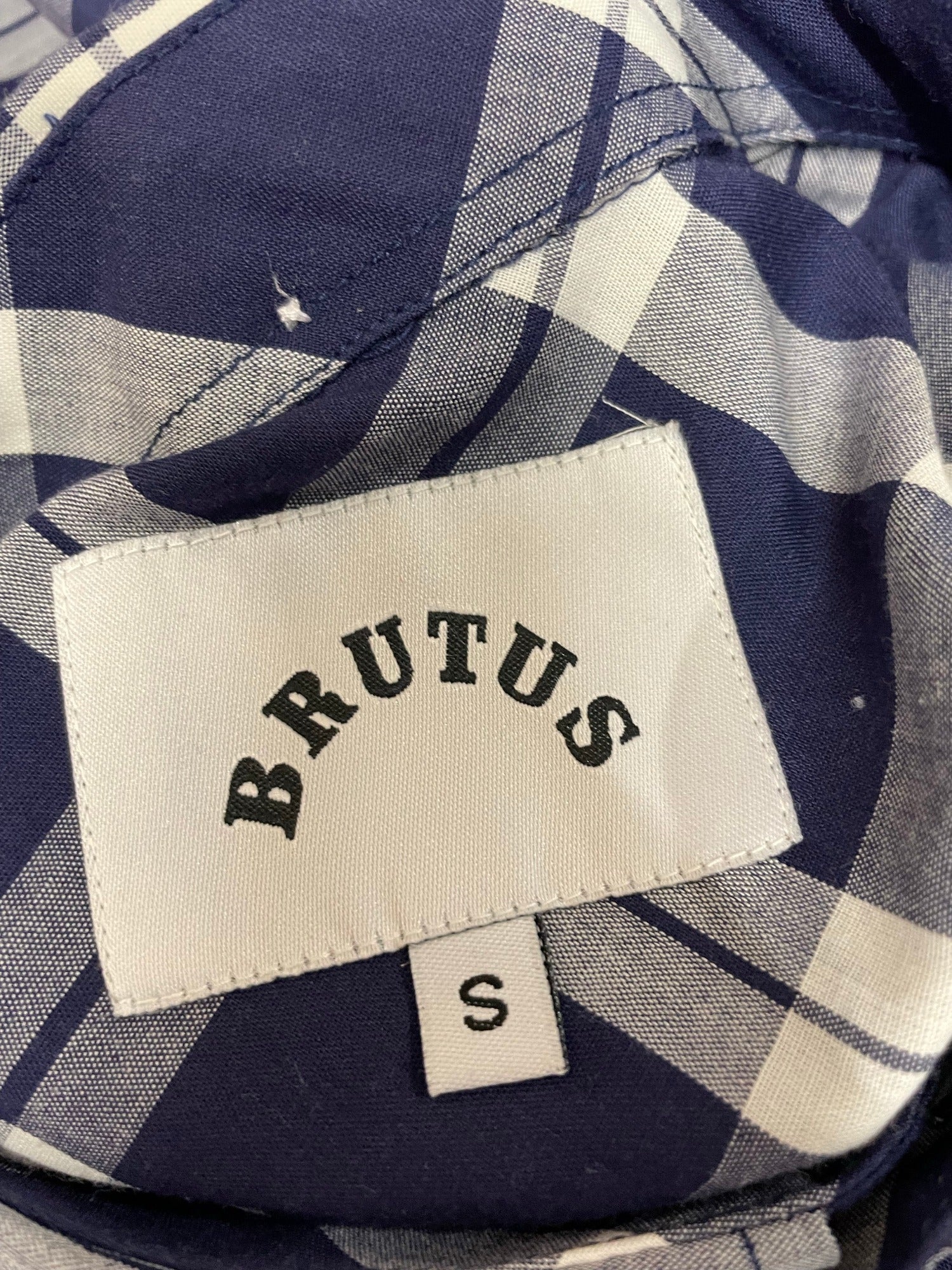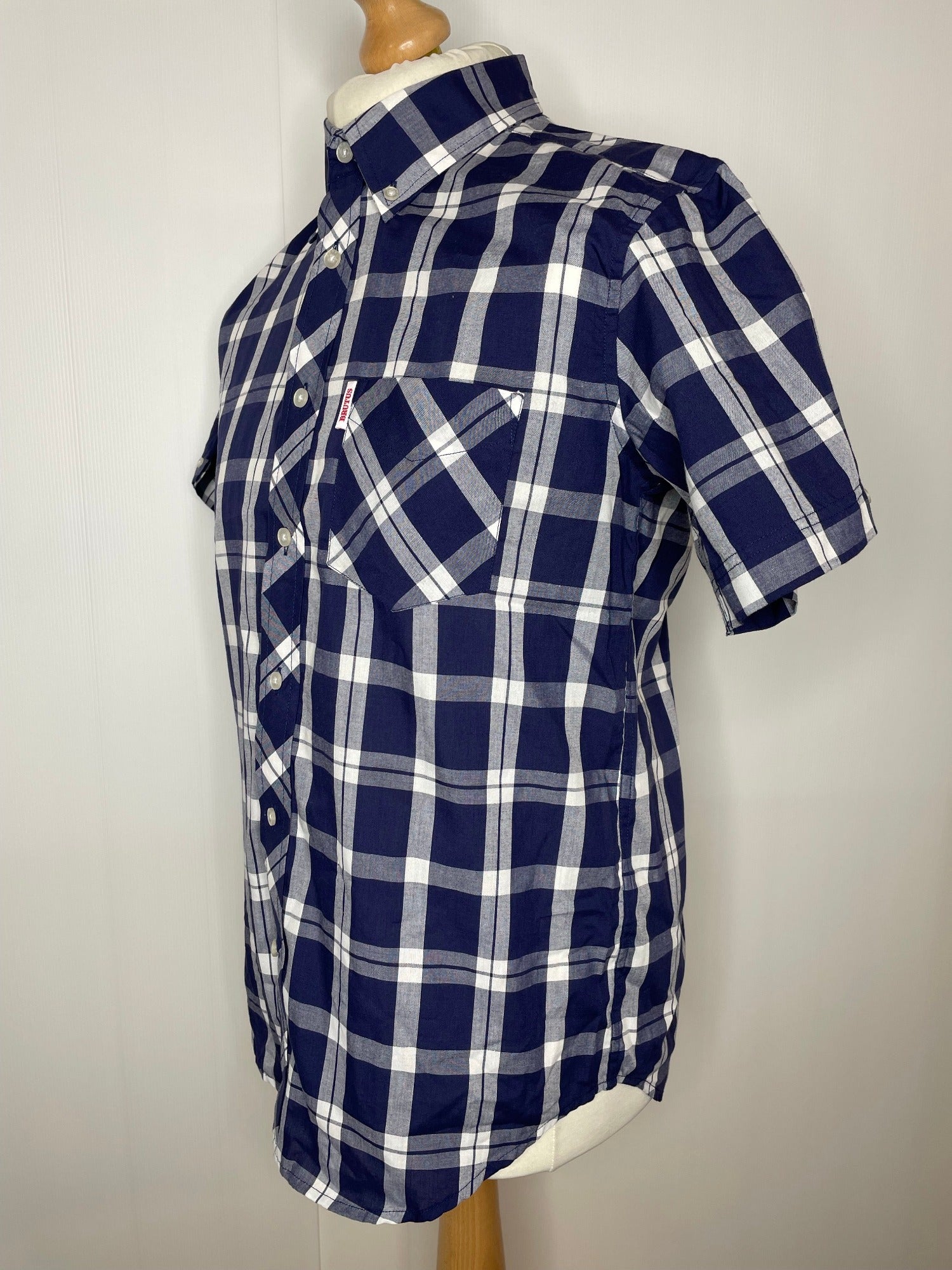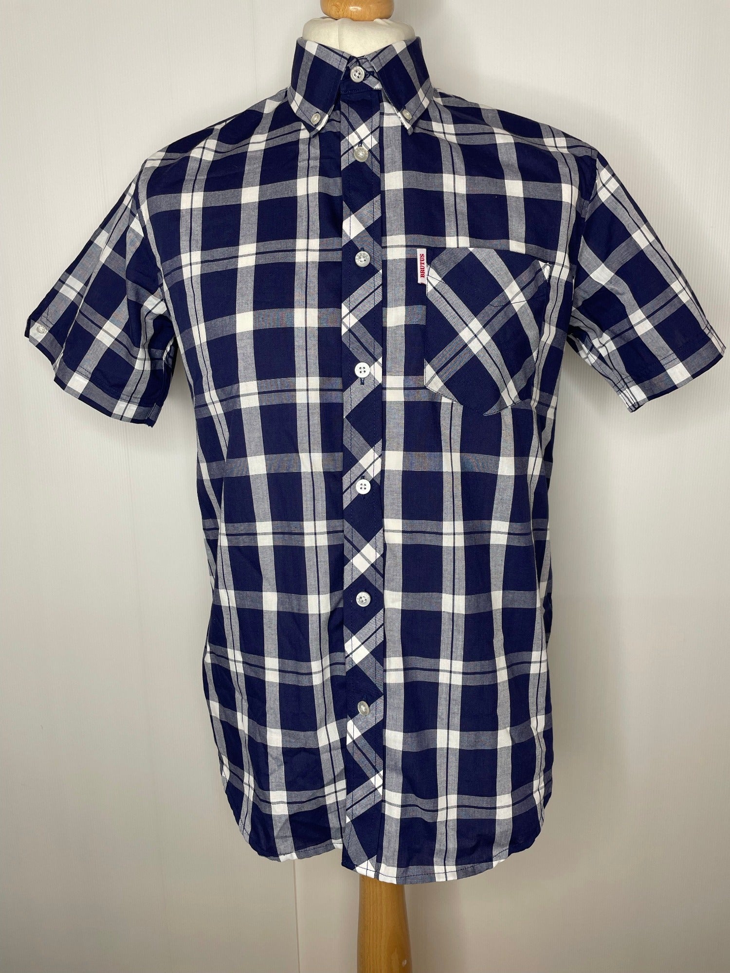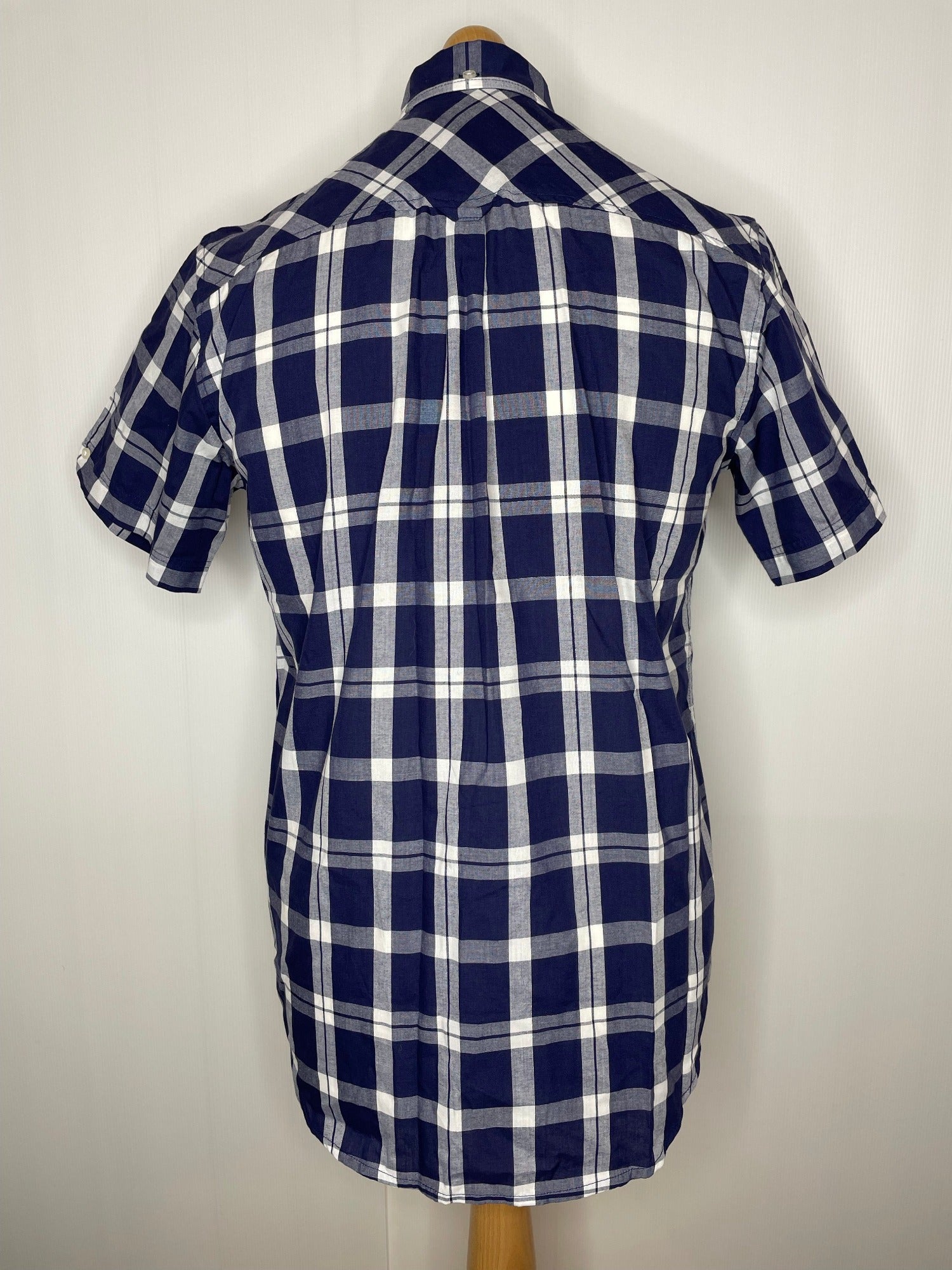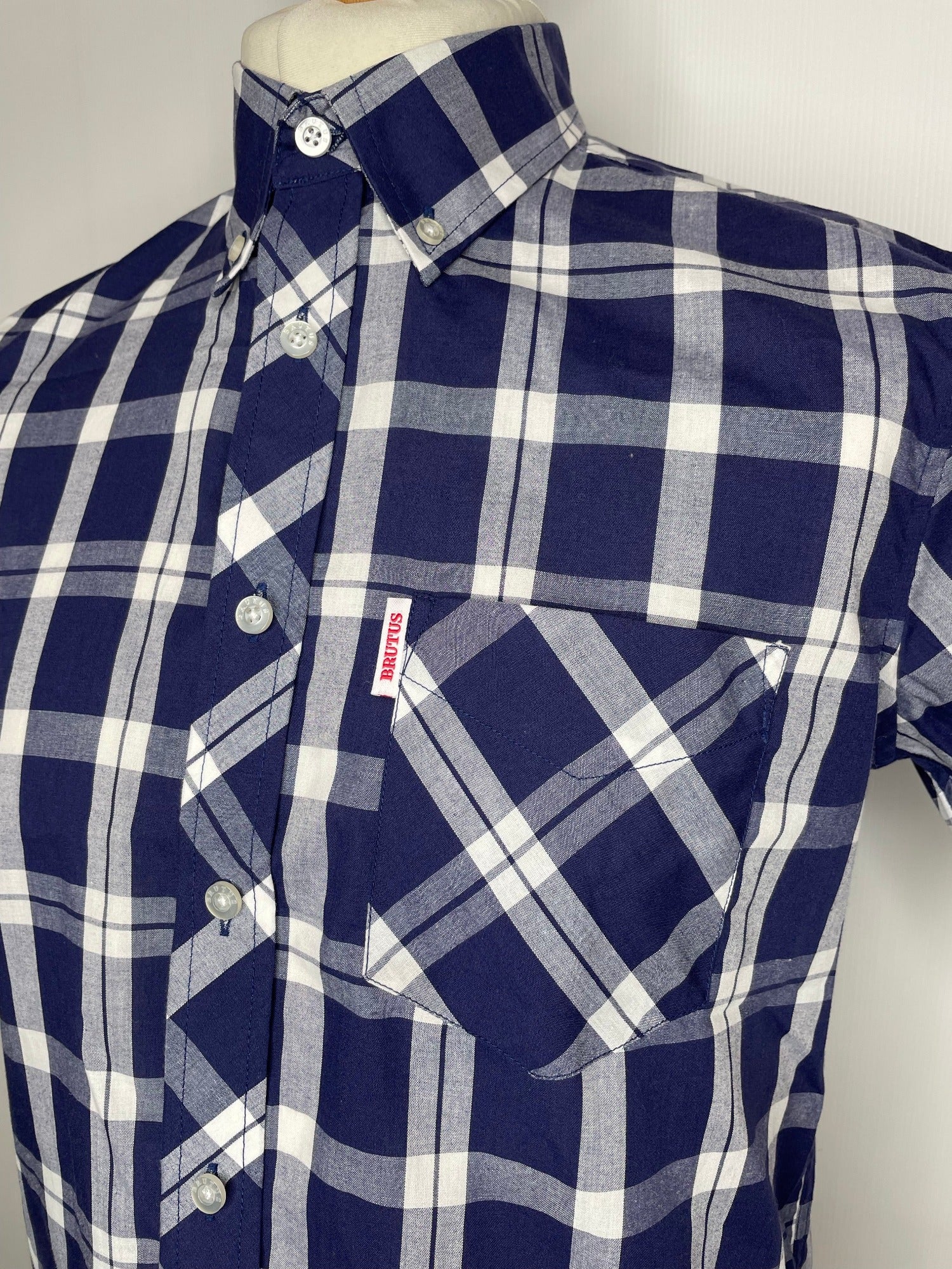 Mens Blue and White Check Short Sleeve Brutus Skinhead Shirt - Size Small
