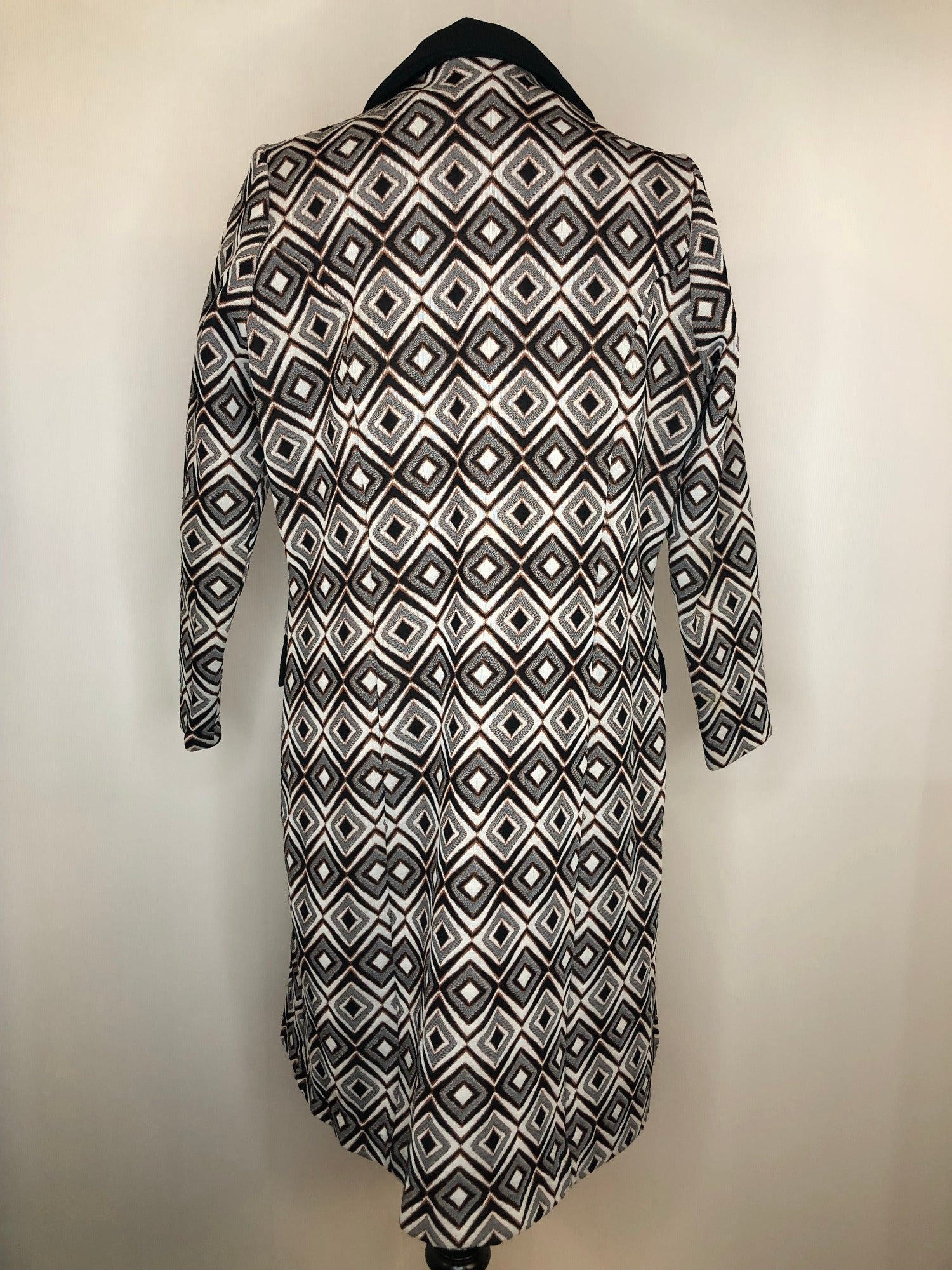 1960s Diamond Pattern Long Jacket in Black and White - Size UK 12