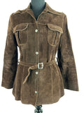 Womens original 1960s suede jacket in brown by Suedecraft of Bradford with three front pockets and fully lined with a button front fastening.