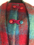 Original 1960s Mohair and Wool Check Cape by Strathay Originals in red and blue, with a button front fastening and tie neck. The cape is also fully lined.