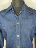 1970s Dark Blue Denim Large Collar Western Shirt Jacket - Size Medium