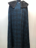 Womens stunning original 1950s vintage full length Otterburn Tweed Cape in Turquoise with a faux fur black collar and a button and press stud neck front fastening. The cape is fully lined.